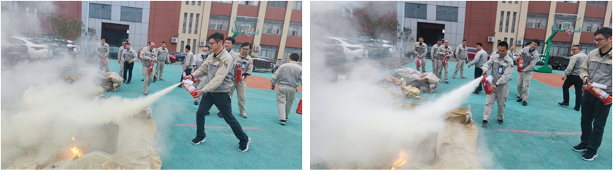 有了理論知識,也提高了消防安全意識,又懂得了安全生產(chǎn)大于天,那接下來就是安全實踐、消防演練環(huán)節(jié)。在操場上,模擬了一個火災現(xiàn)場,熊熊烈火、滾滾濃煙,在煙霧彌漫中讓每一位參加培訓的員工都親身體驗了一次滅火的過程,從提灌、拔栓到噴射,一氣呵成,不僅學到了知識,也知道該如何正確操作滅火器,更親身感受到了火災的危害。